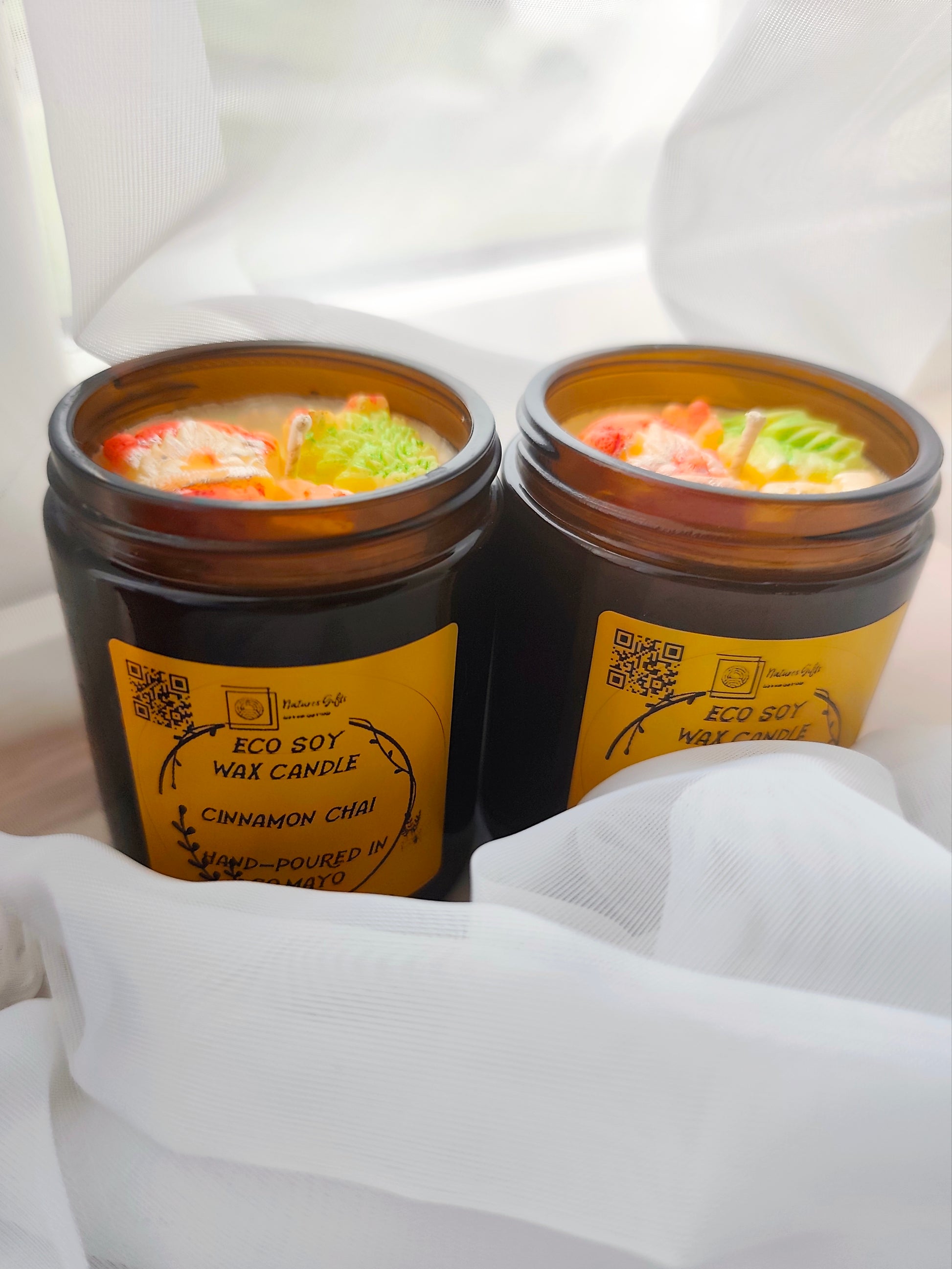 Embrace the comforting aroma of Cinnamon Chai, a rich blend of spicy cinnamon, creamy vanilla, and warm clove. Hand-poured using natural soy wax for a clean, even burn, this candle comes in a stylish reusable amber glass jar — the perfect touch of sustainable luxury.