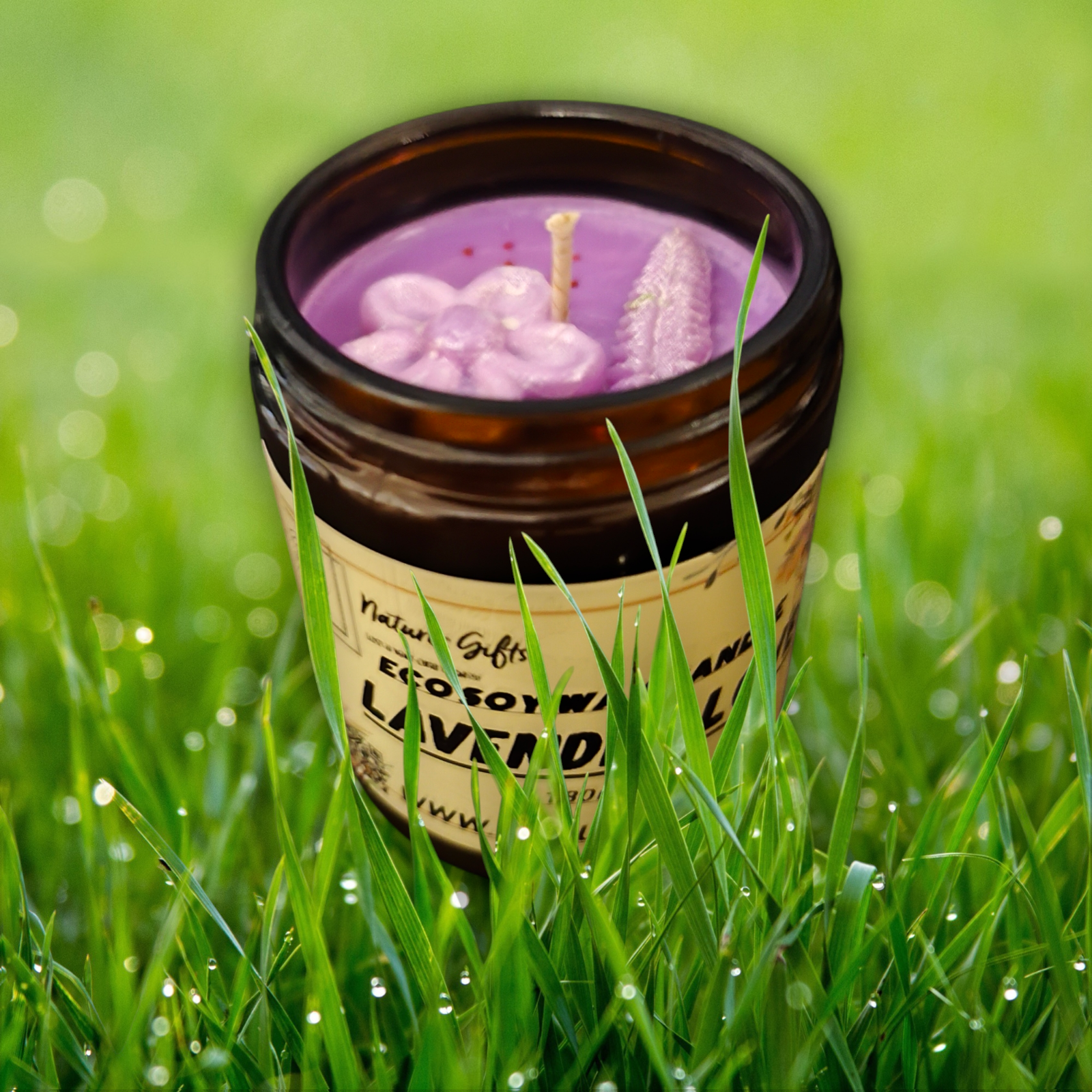 This natural eco soy candle is hand poured from eco soy wax c-3 . It will have clean burn. Lavender fragrance will fill your space with beautiful calm aroma. Beautiful 180ml brown glass container. Approx 40 h burn time.