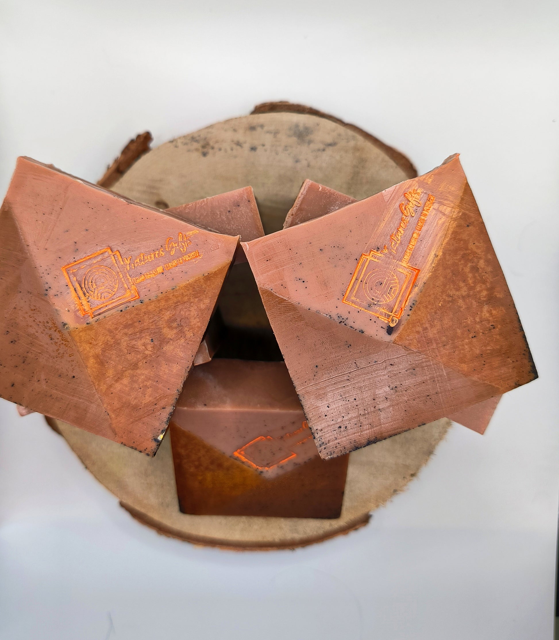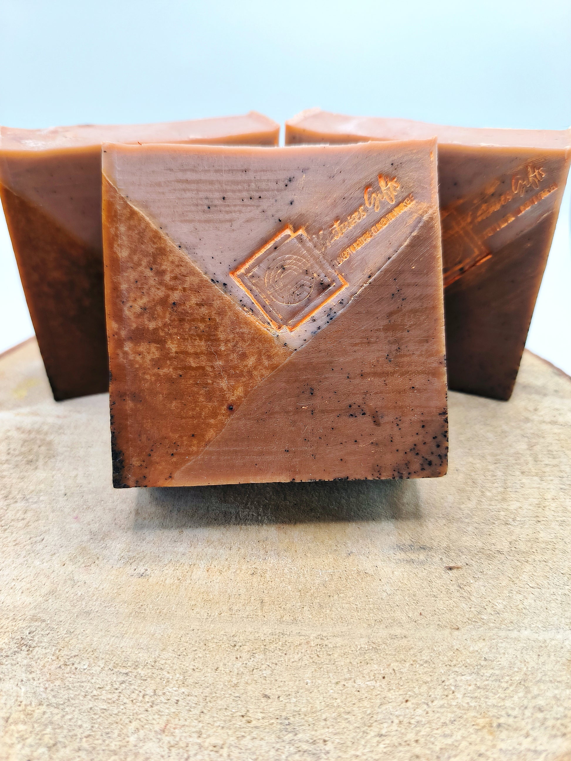 Hand poured glycerine soap. Made in small batches. Will refresh your skin added coffee grounds will gently remove dead skin cells. Specially made with coffee lovers in mind.