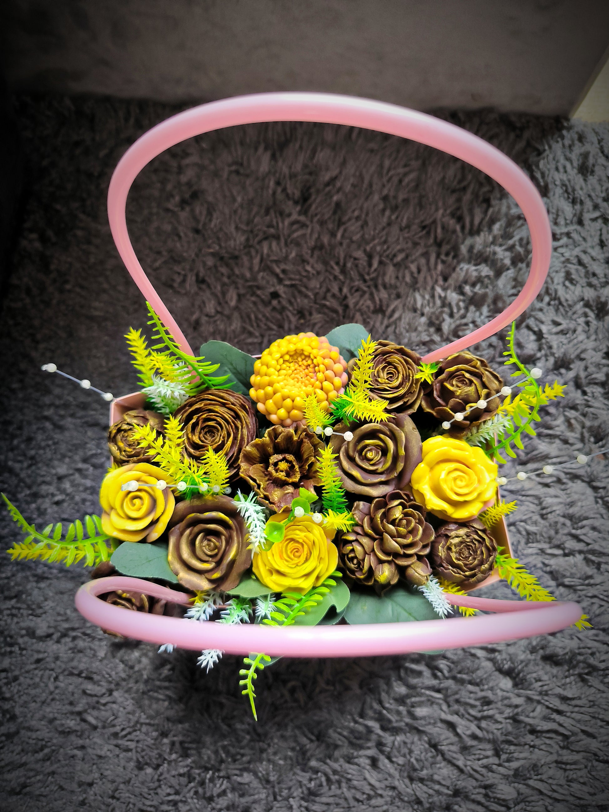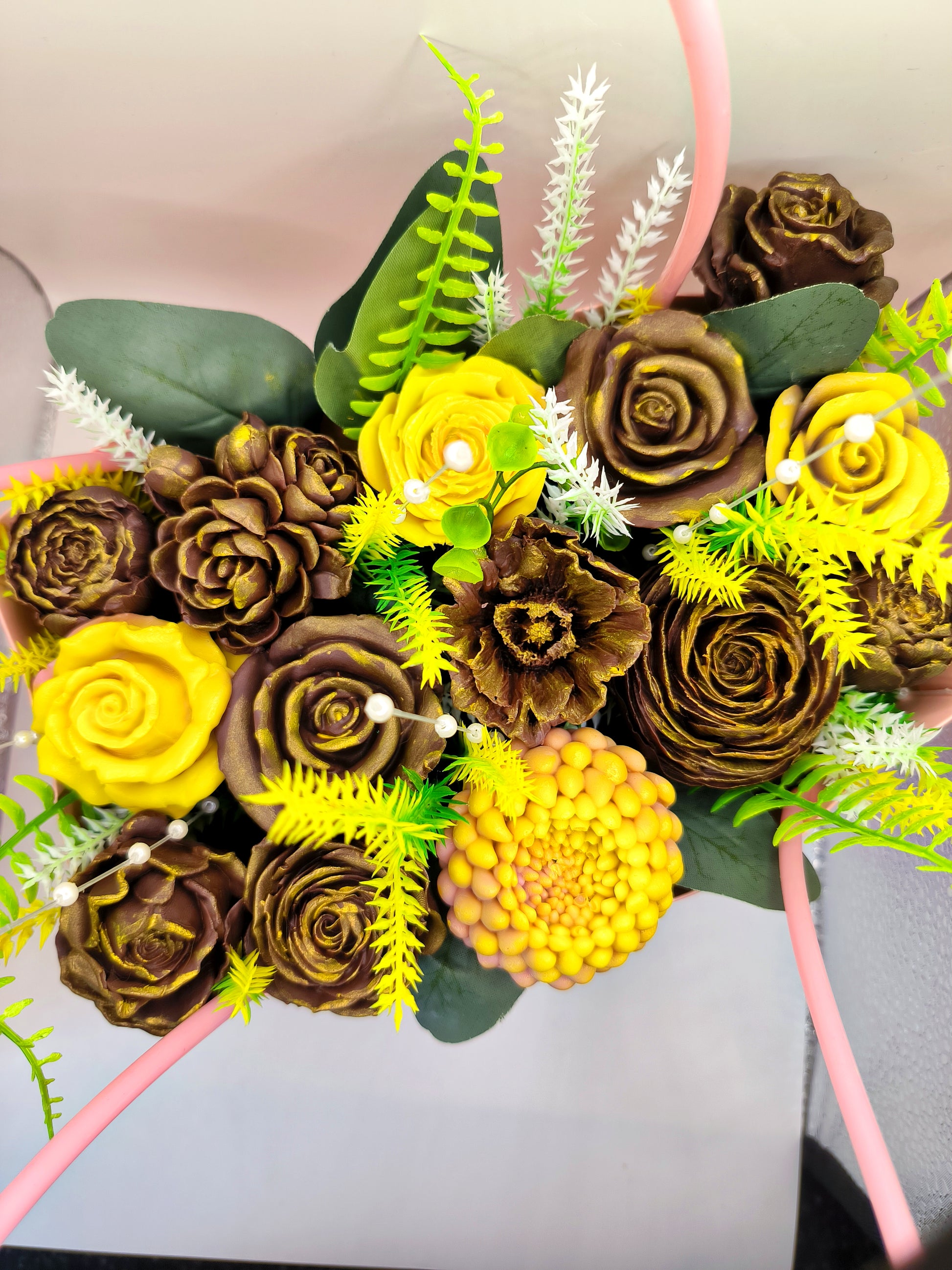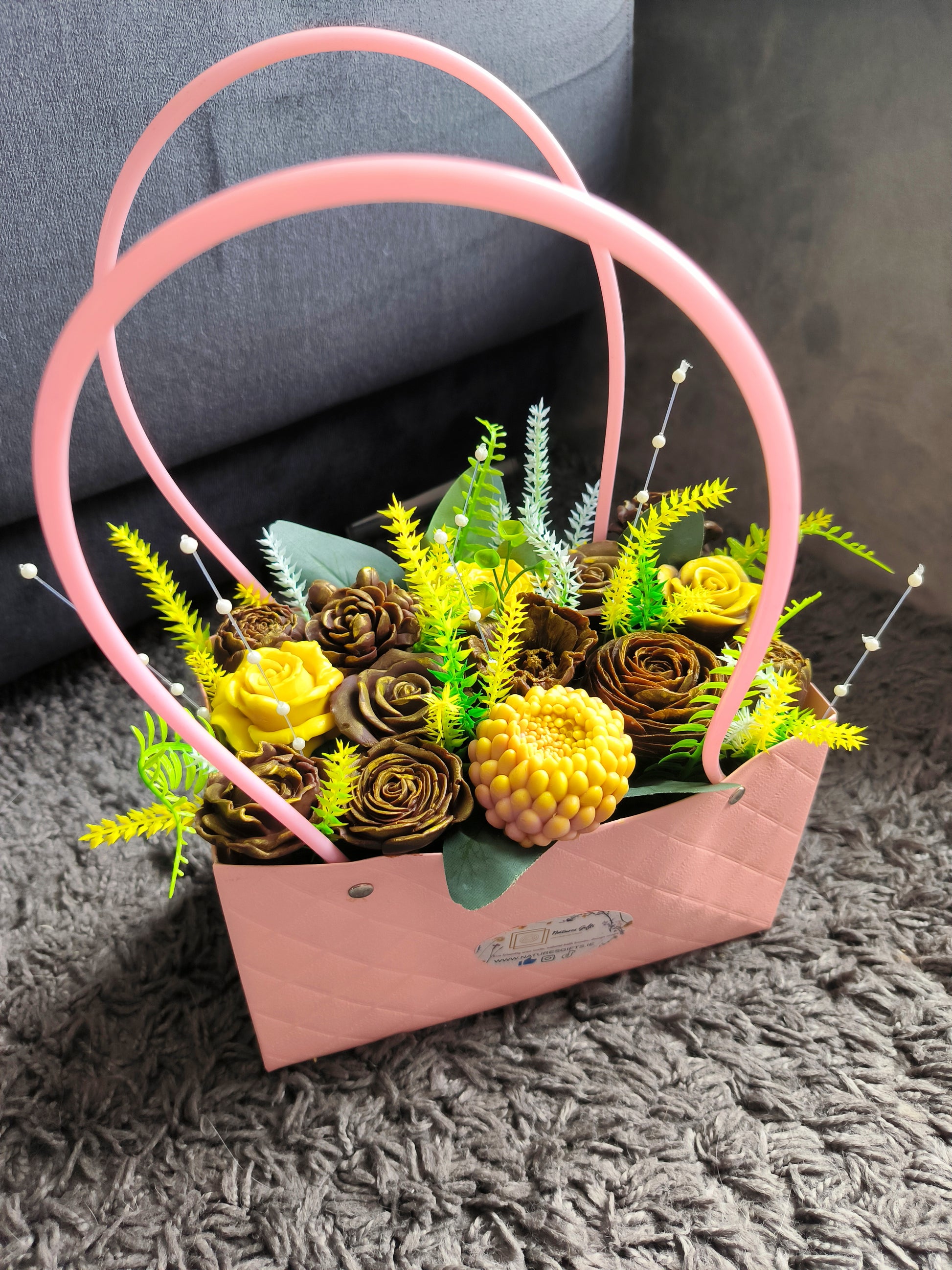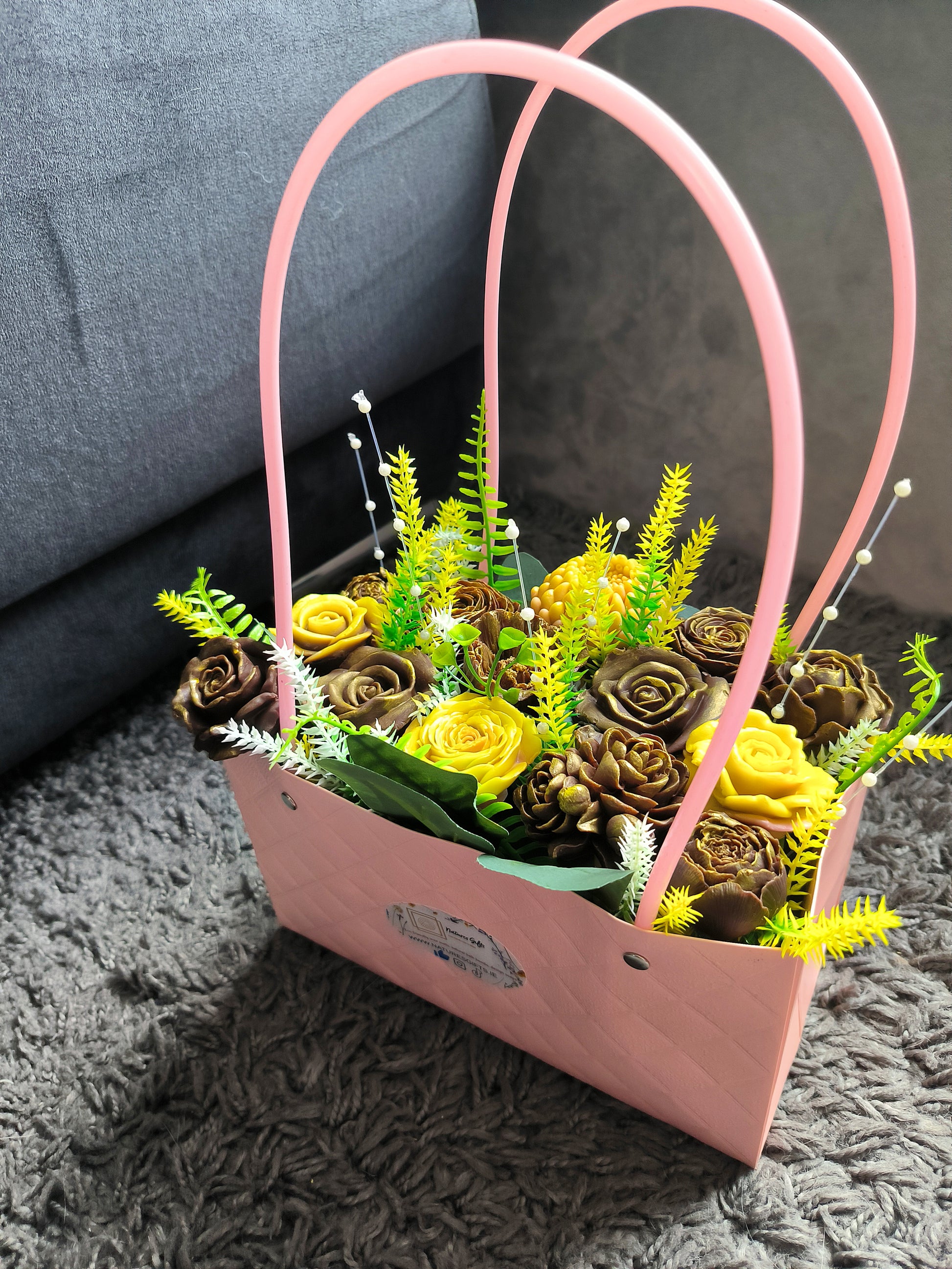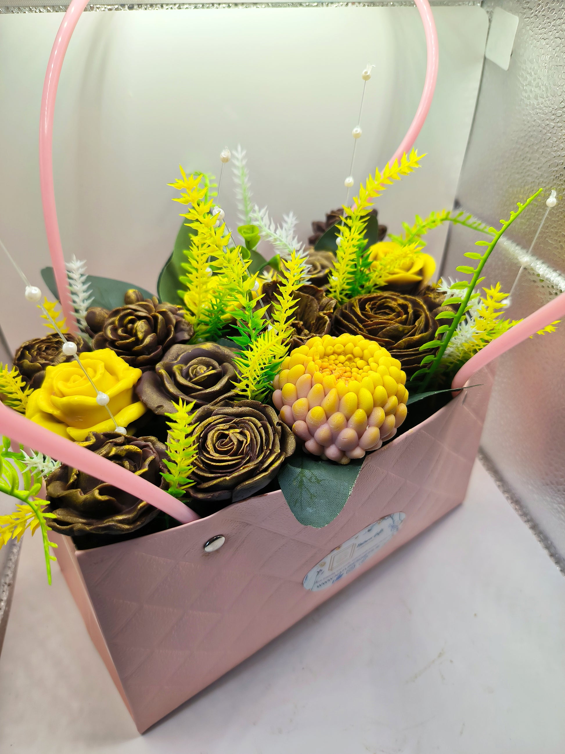 This lovely handbag style soap bouquet will brighten up your home and senses. Made of glycerine soap what will moisture your skin. Suitable for all skin types and is vegan friendly. Unique gift idea for someone special.