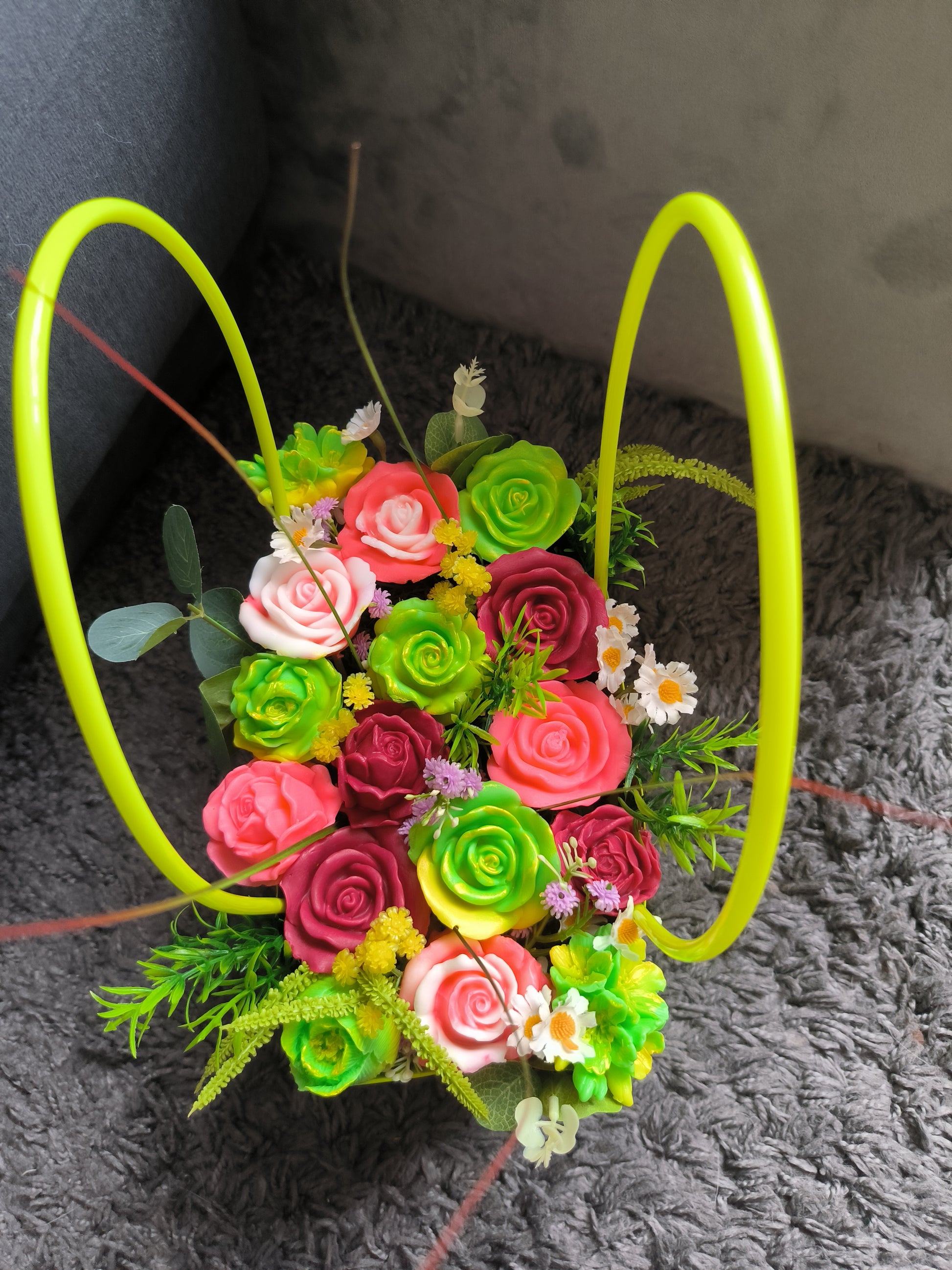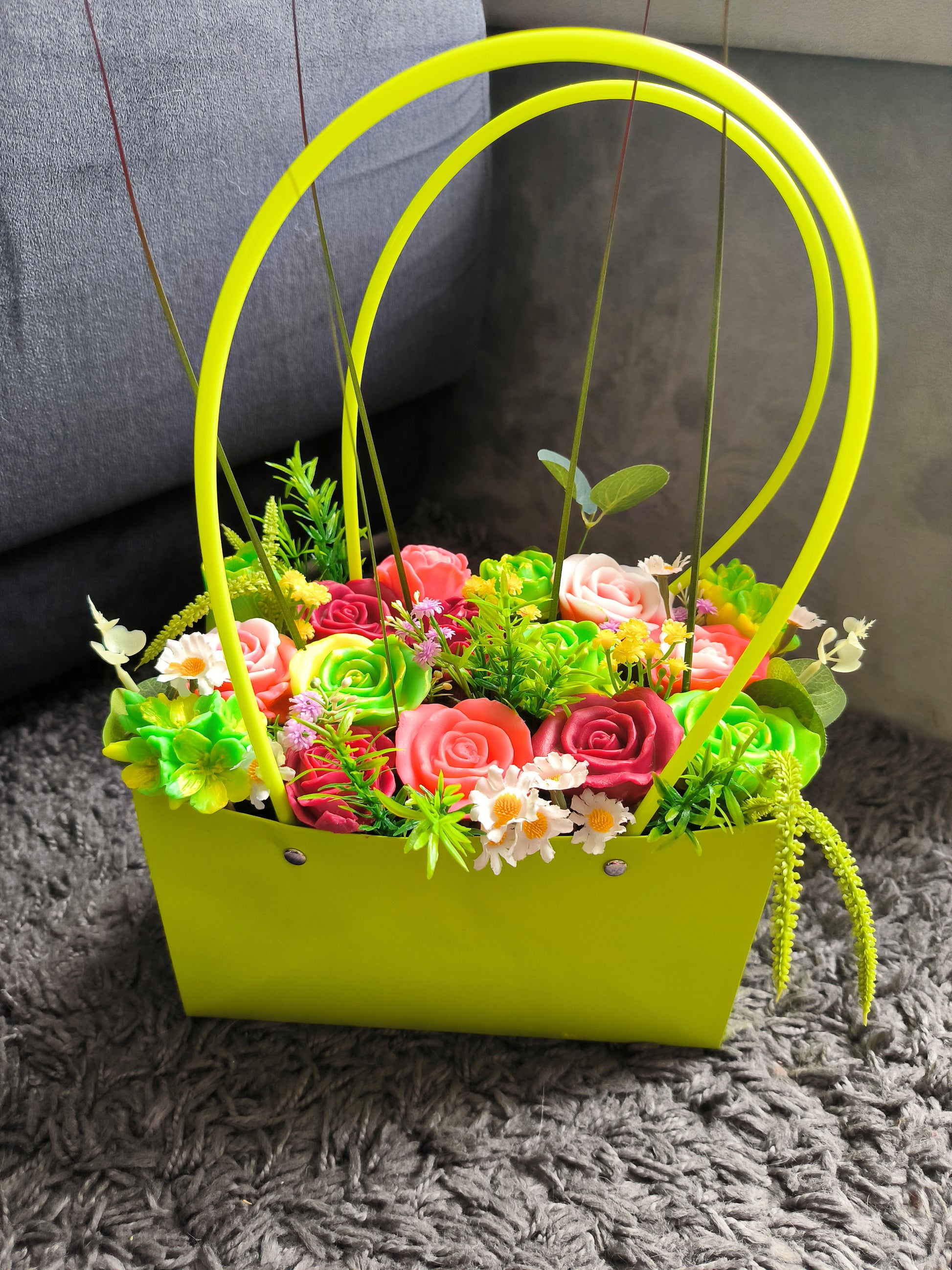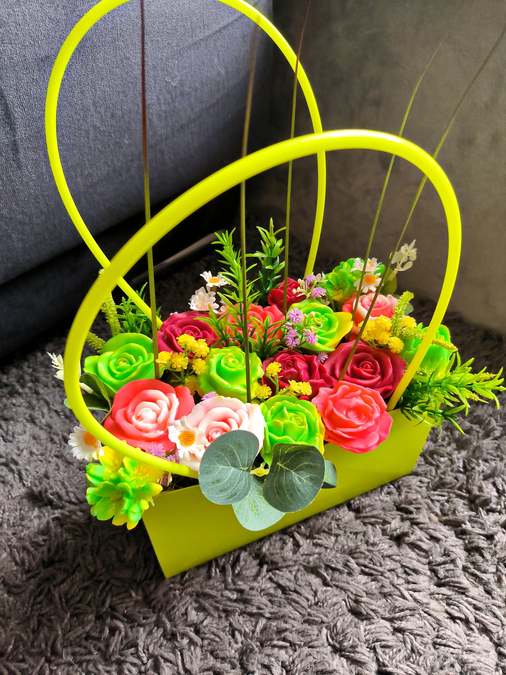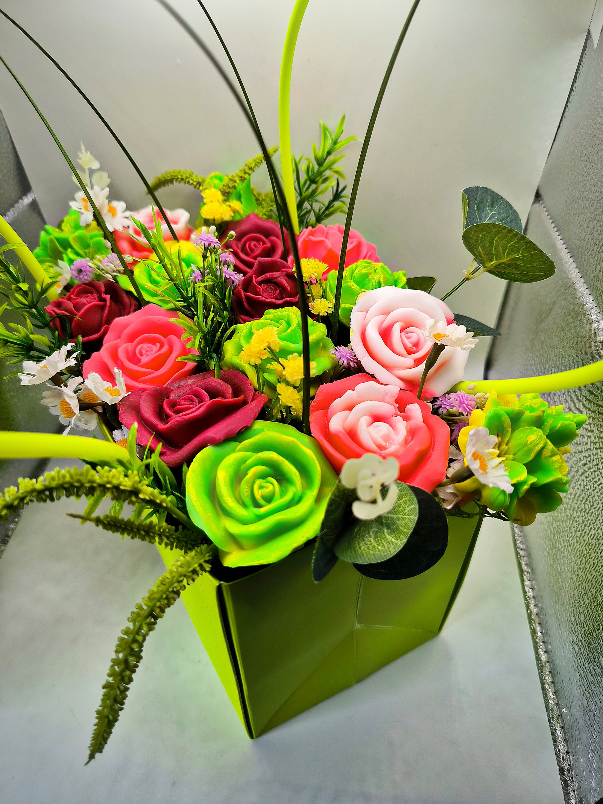 Indulge in the ultimate gift of beauty and relaxation with our Handcrafted soap bouquet. Carefully designed to mimic the elegance of fresh flowers, each bouquet is composed of premium, hand-poured soaps in a variety of delicate scents and colours. Soap will leave your skin feeling soft and rejuvenated. This soap bouquet has playful,fresh fragrance of fruits.