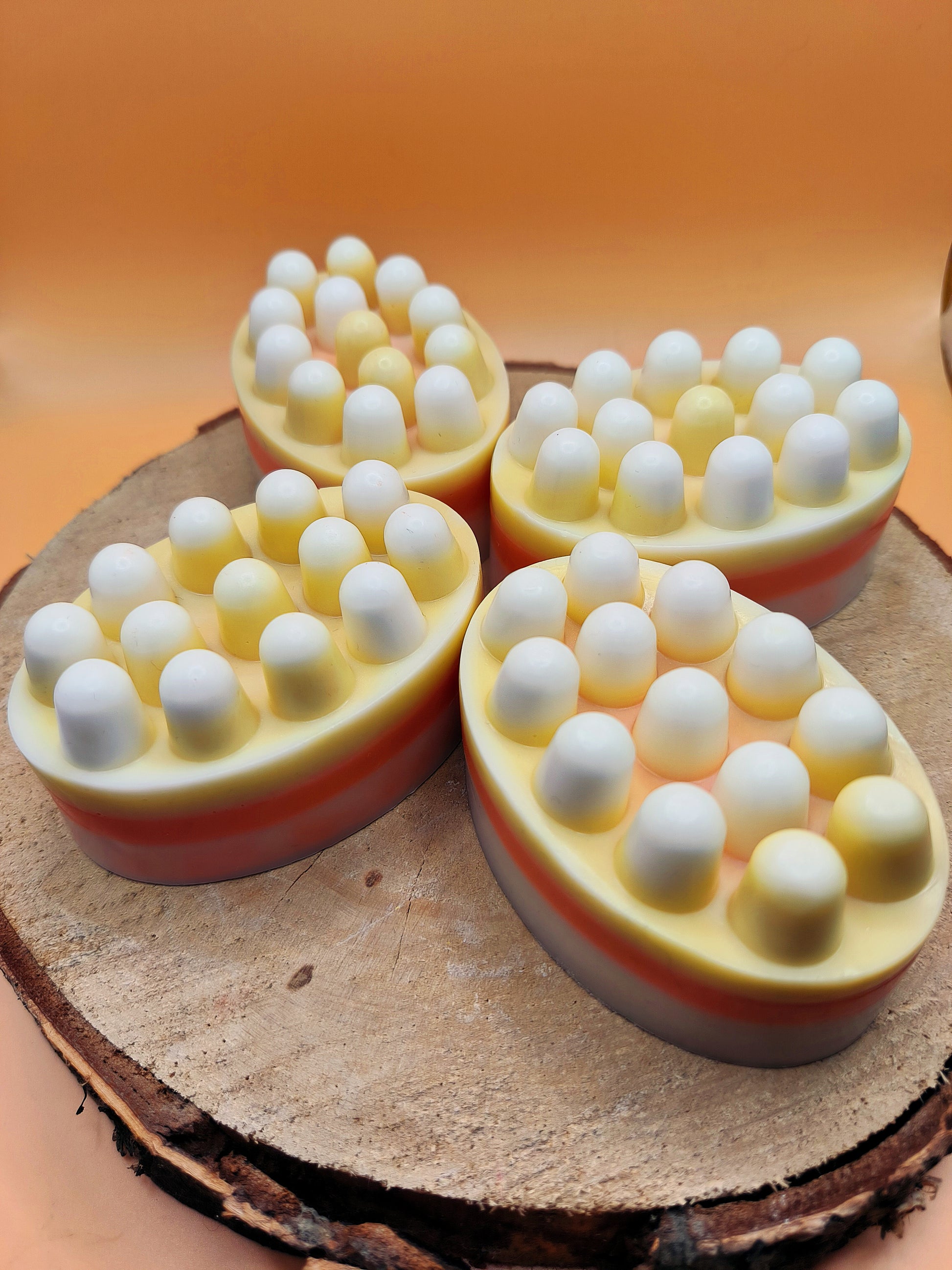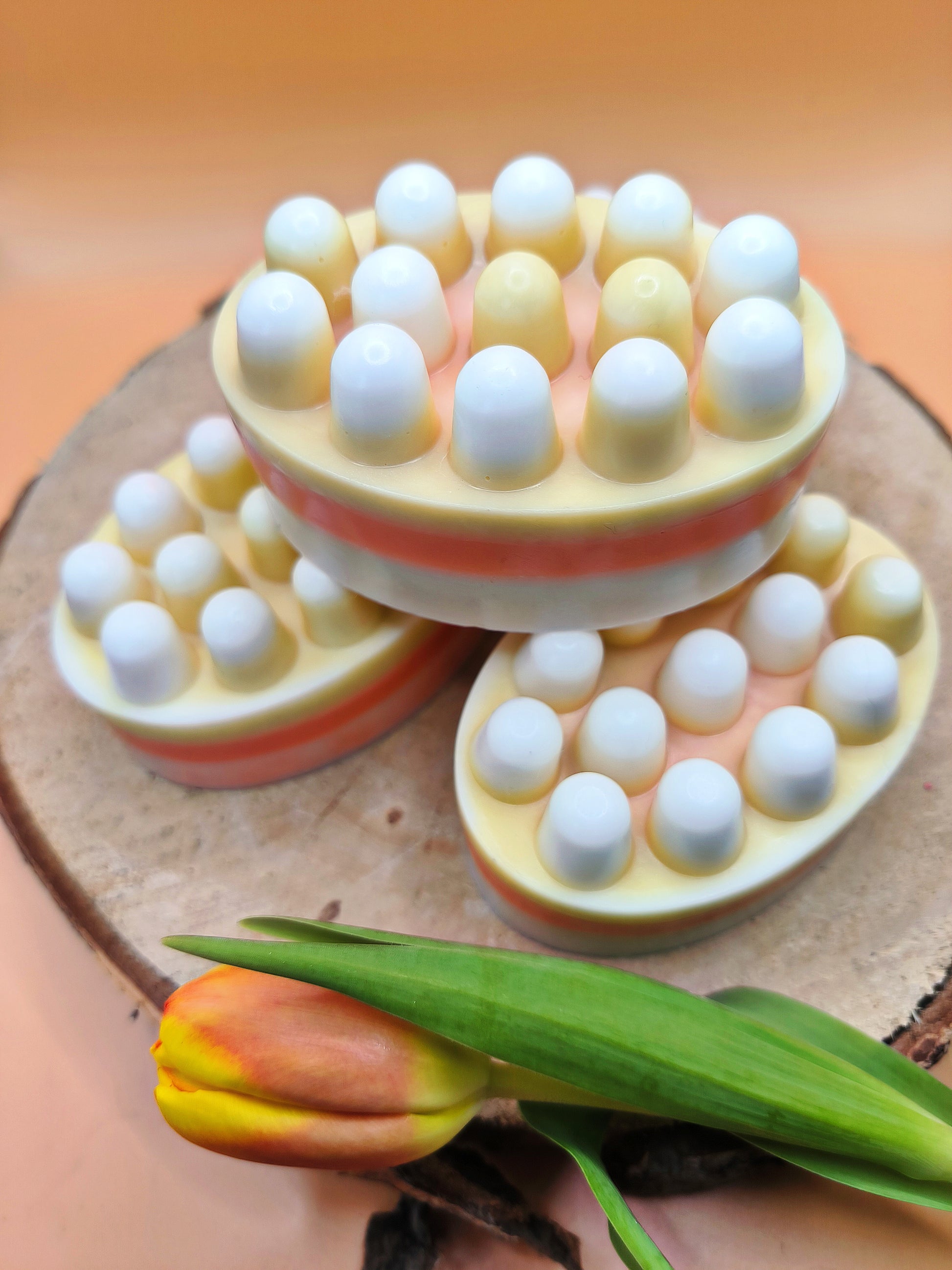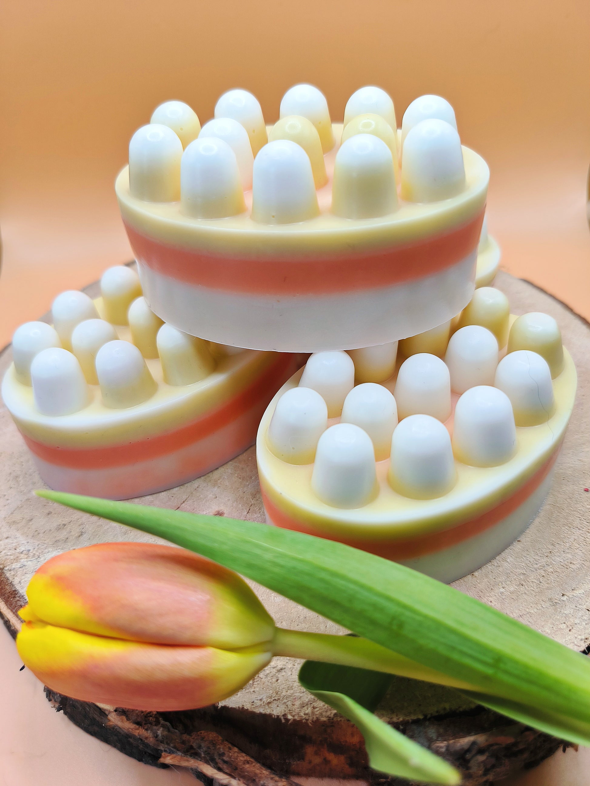 Flowerbomb is a popular fragrance. It's a floral, sweet,and sophisticated scent that has gained a loyal following.this popular massage soap is inspired by Flowerbomb perfume. Top notes: Tea and bergamot. Heart notes: jasmine, orange blossom,freesia and orchid. Base notes: Patchouli,vanilla and musk. Made from vegan friendly goats milk soap to moisture your skin.