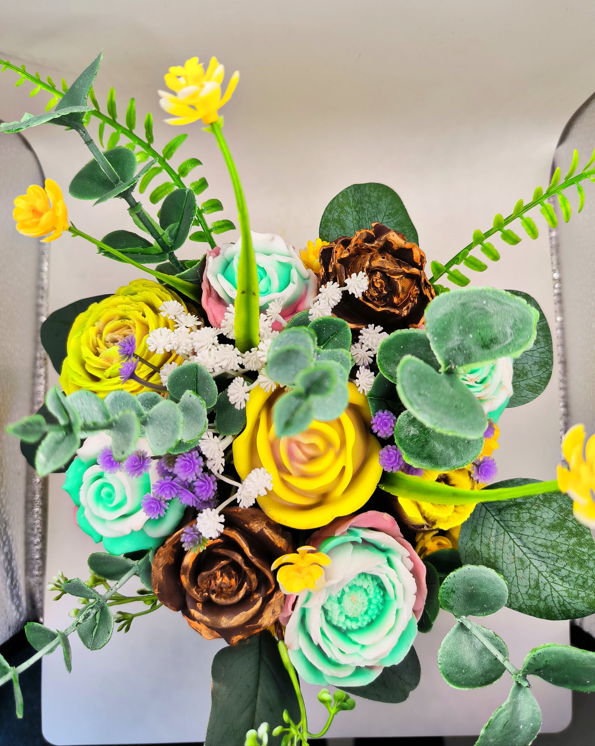 This beautiful hand crafted soap bouquet is amazing gift idea for someone special. Scented with Flowerbomb scent. Made from glycerine soap what will moisturise your skin.
