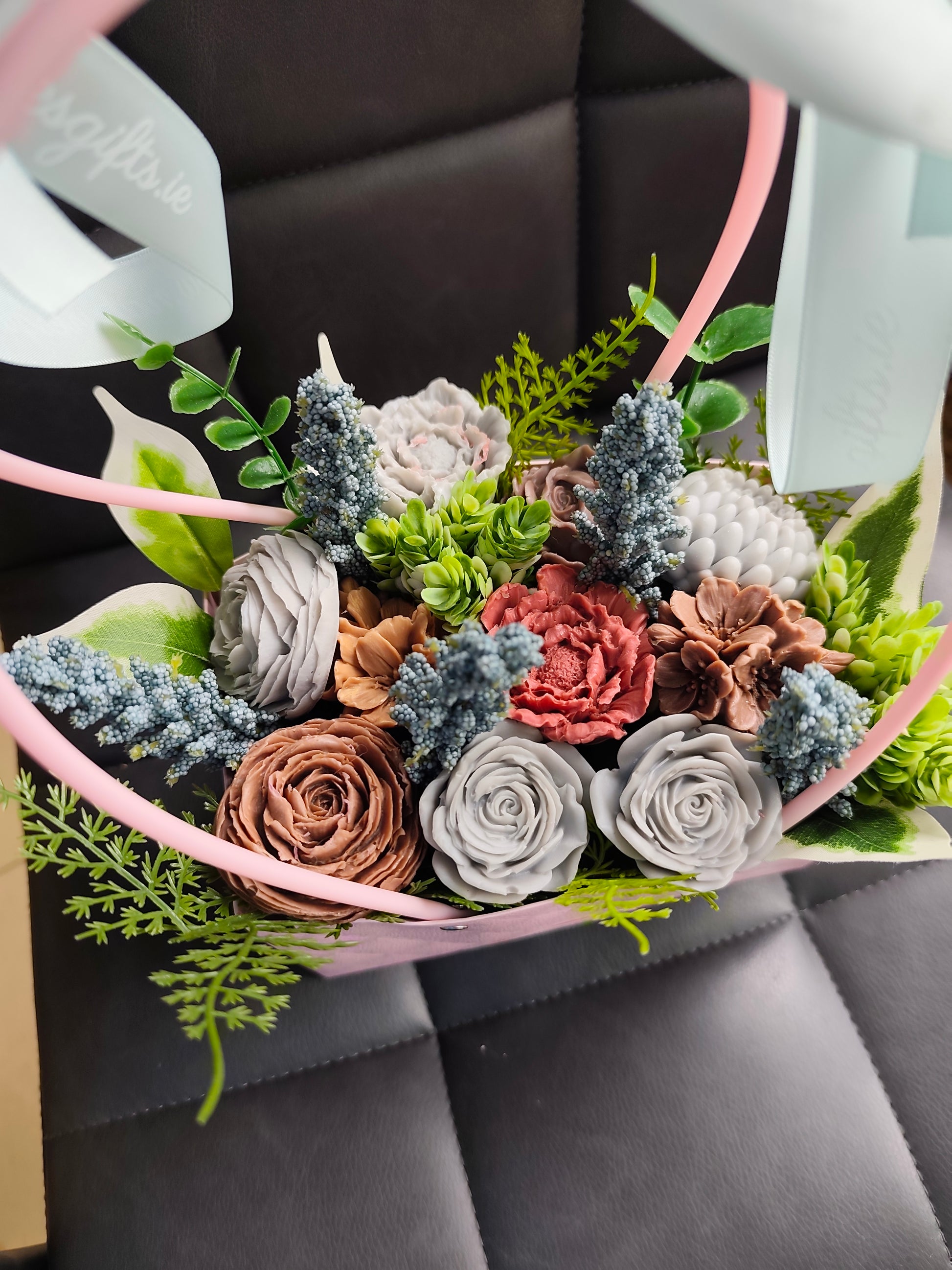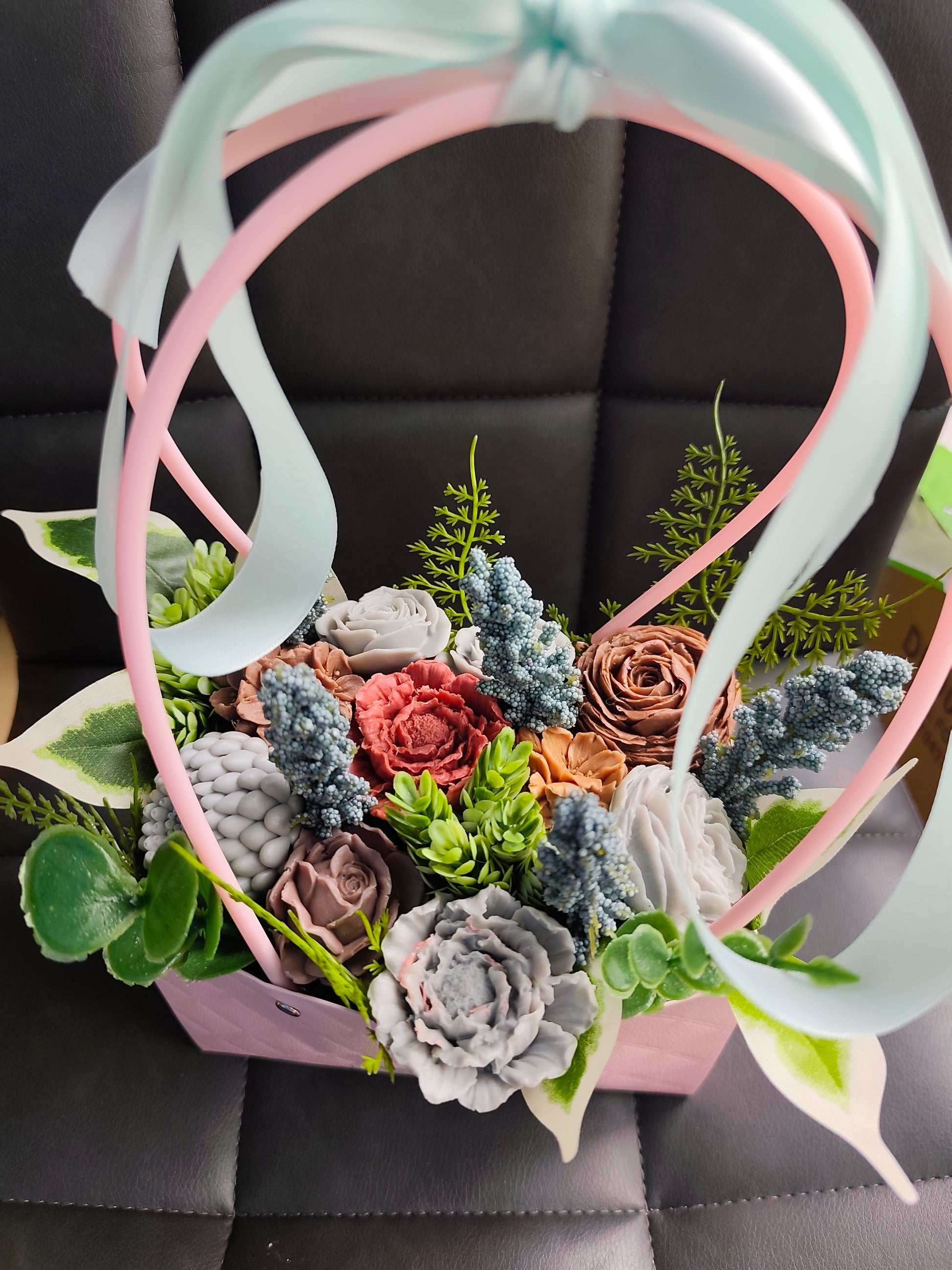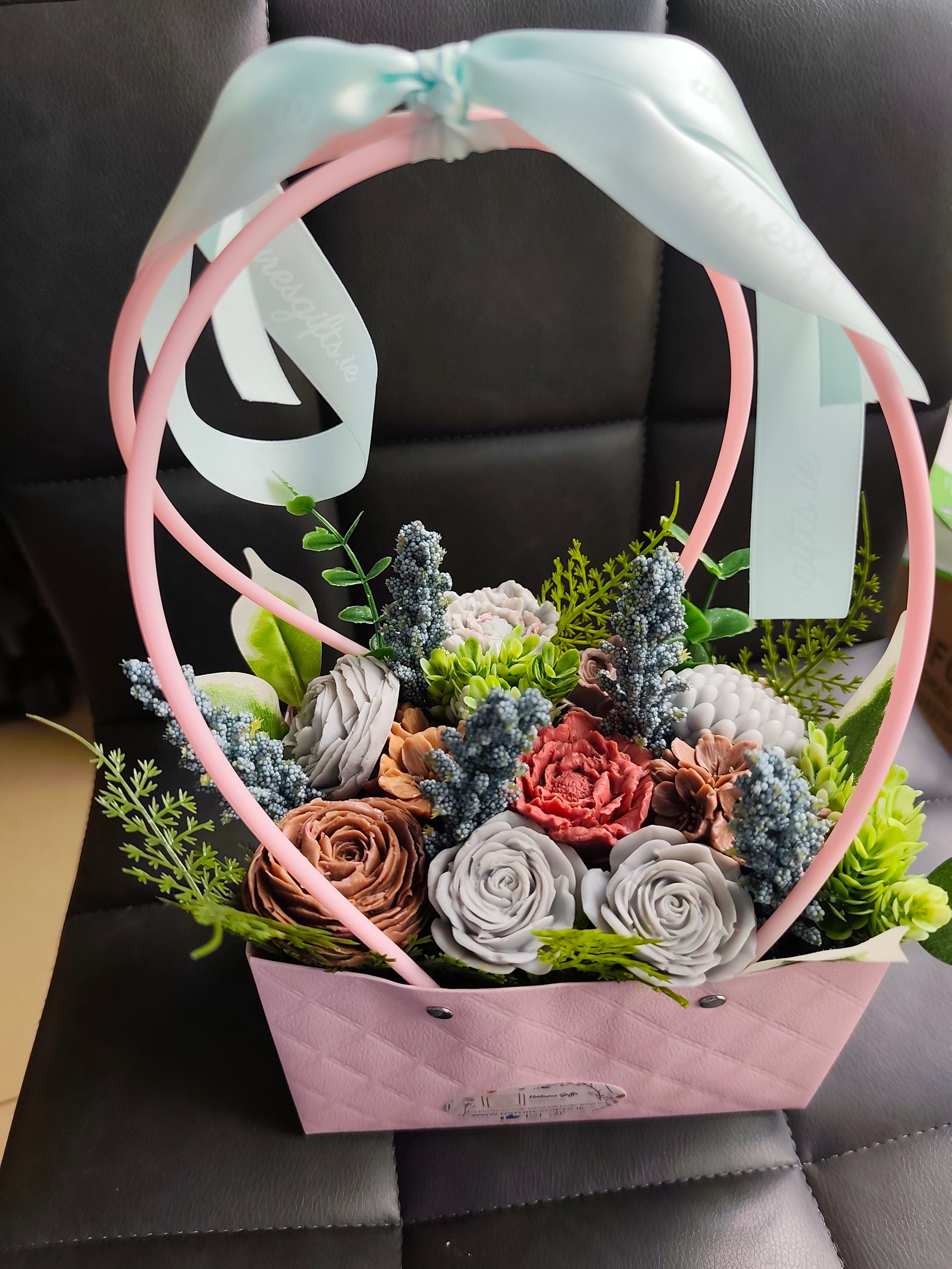 A beautifully arranged bouquet made entirely of vegan, cruelty-free soap flowers, delicately scented for a luxurious touch. Each bloom is designed to look just like real flowers, making it a perfect gift that combines elegance, fragrance, and practicality.