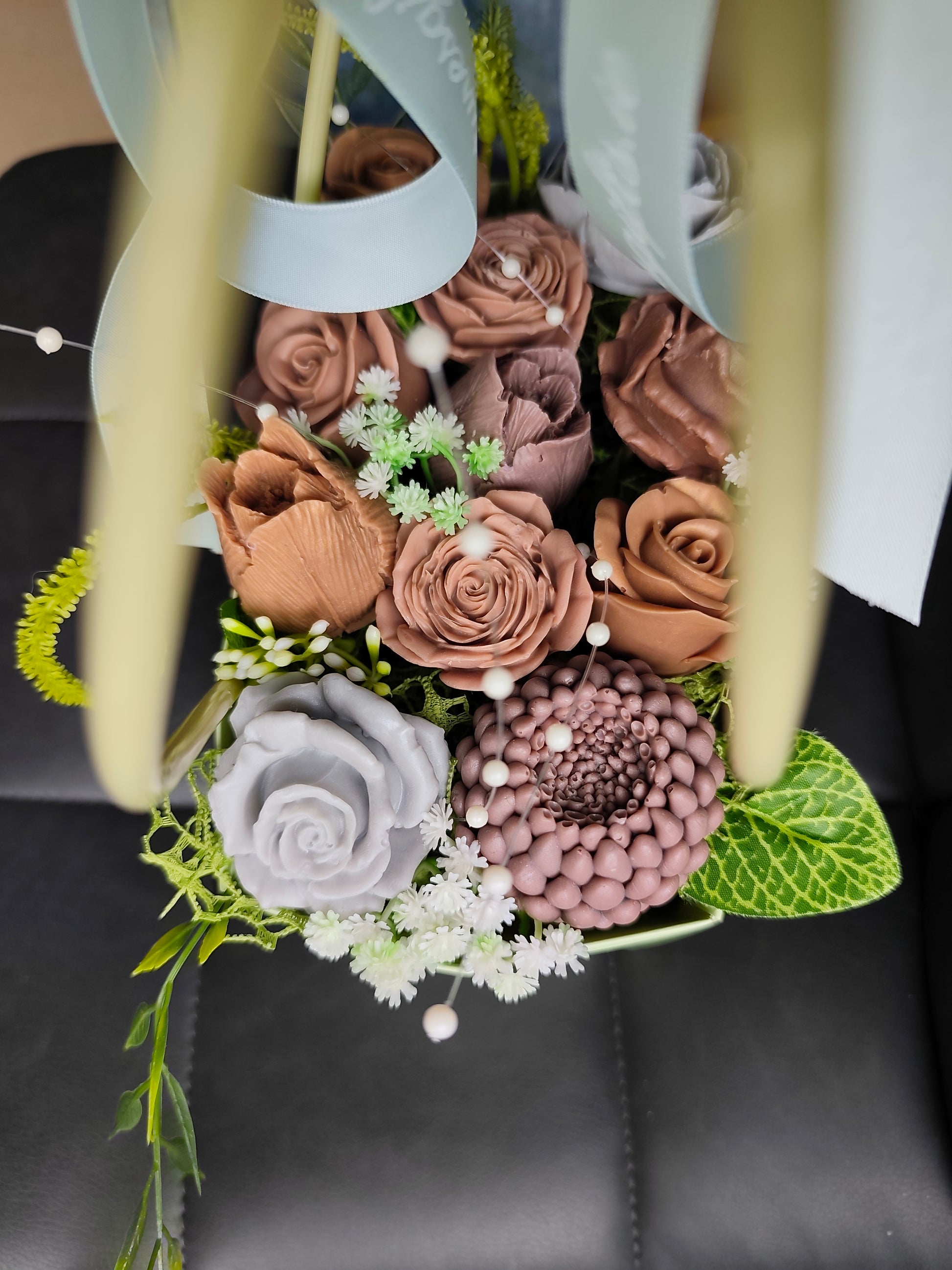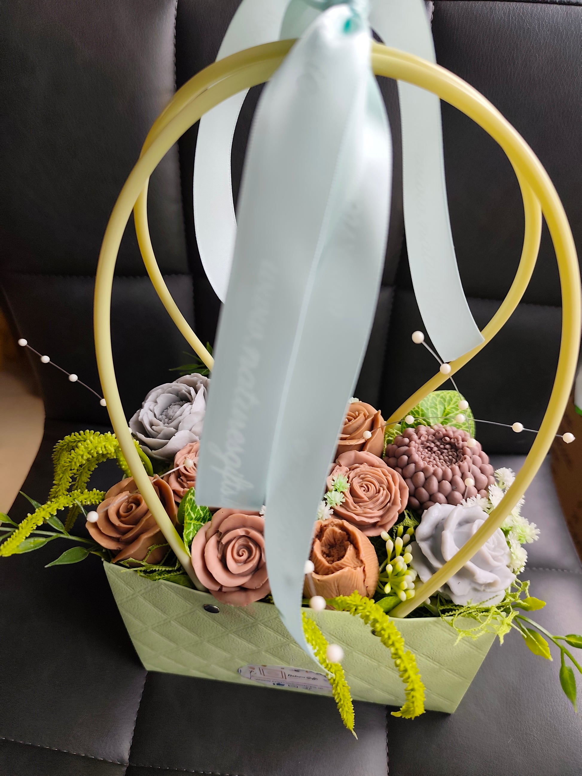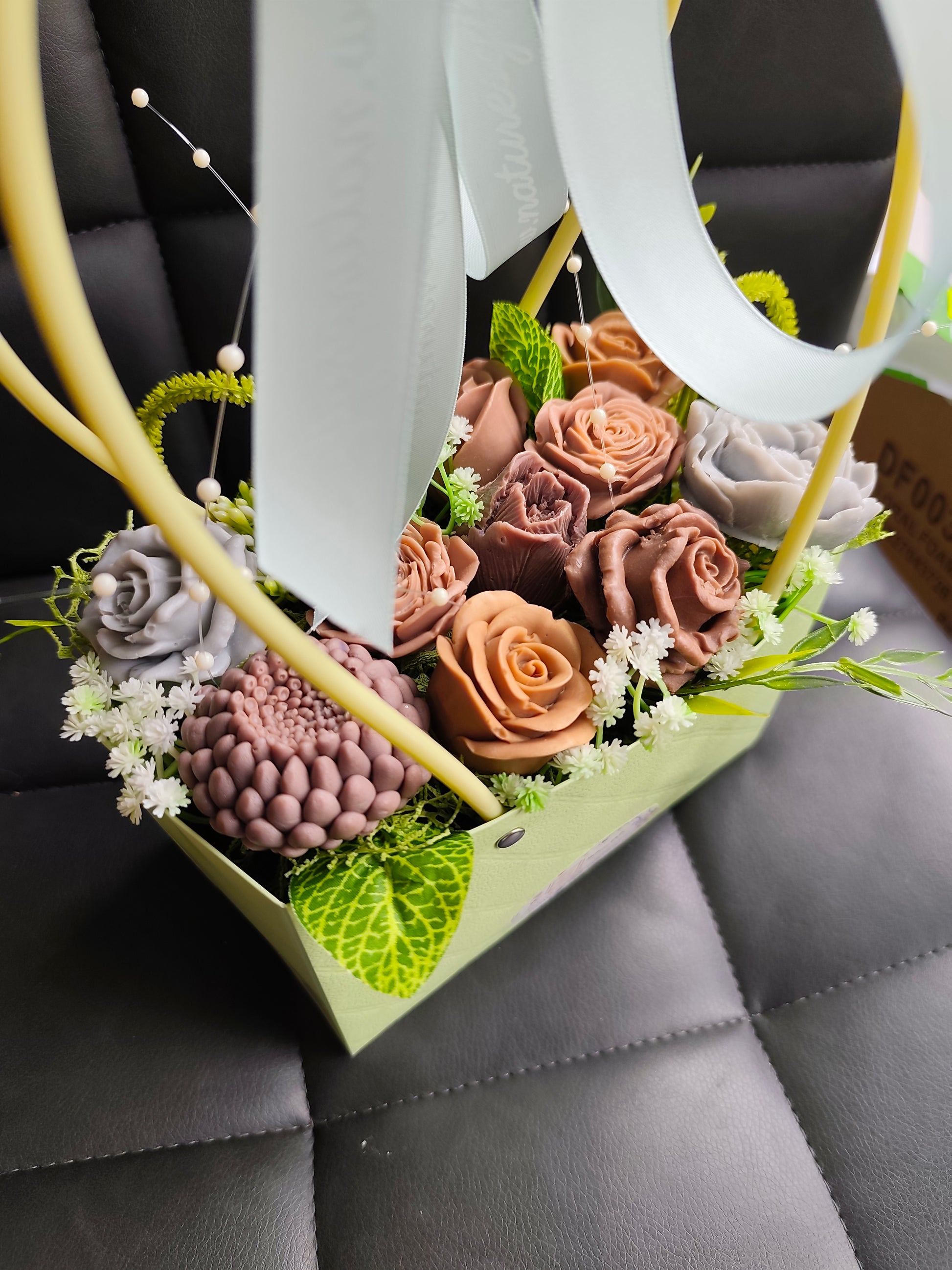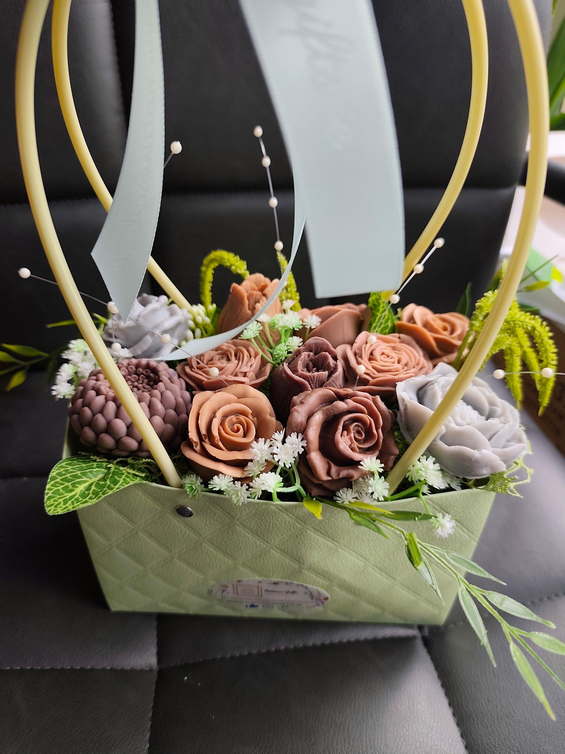 A beautifully arranged bouquet made entirely of vegan, cruelty-free soap flowers, delicately scented for a luxurious touch. Each bloom is designed to look just like real flowers, making it a perfect gift that combines elegance, fragrance, and practicality.