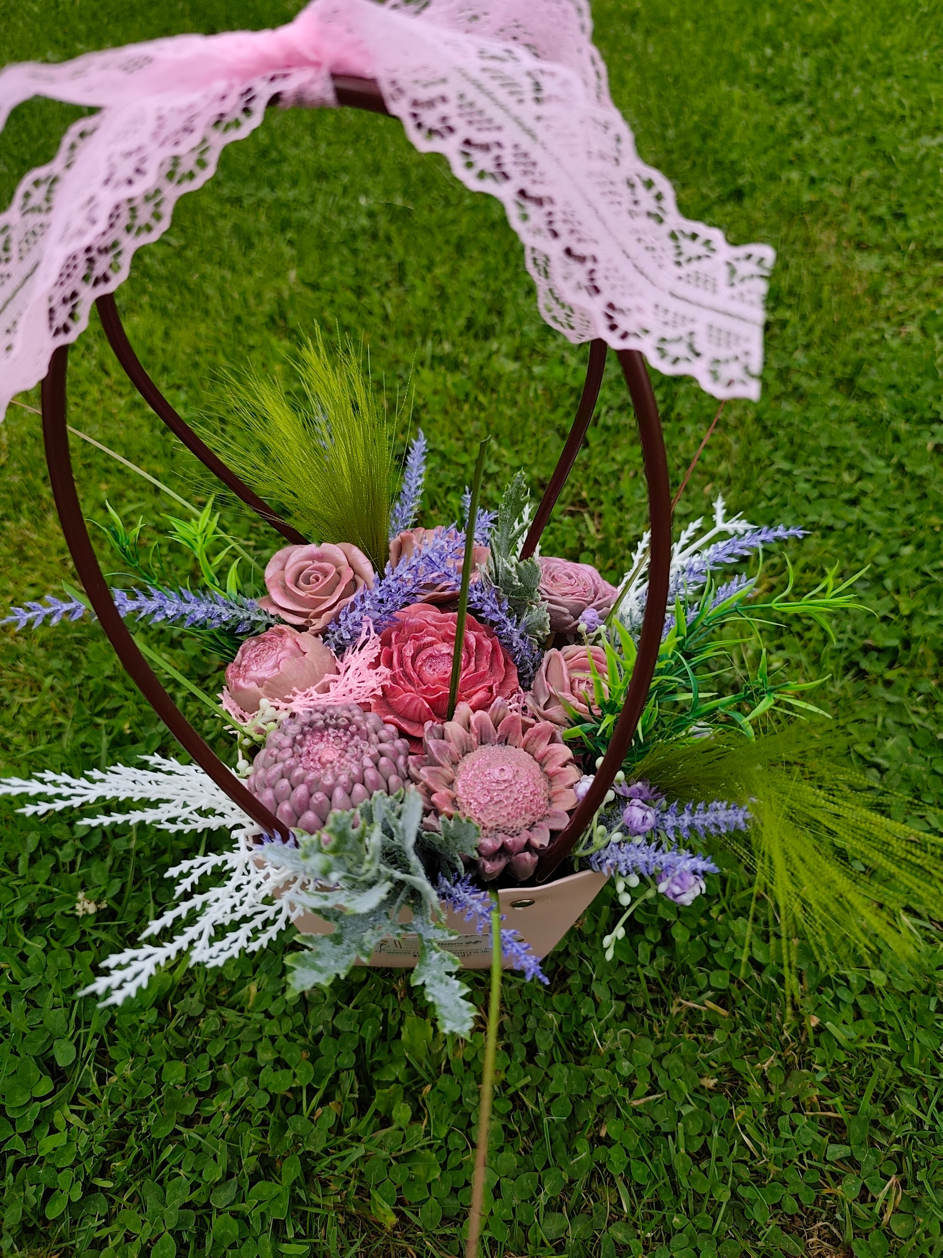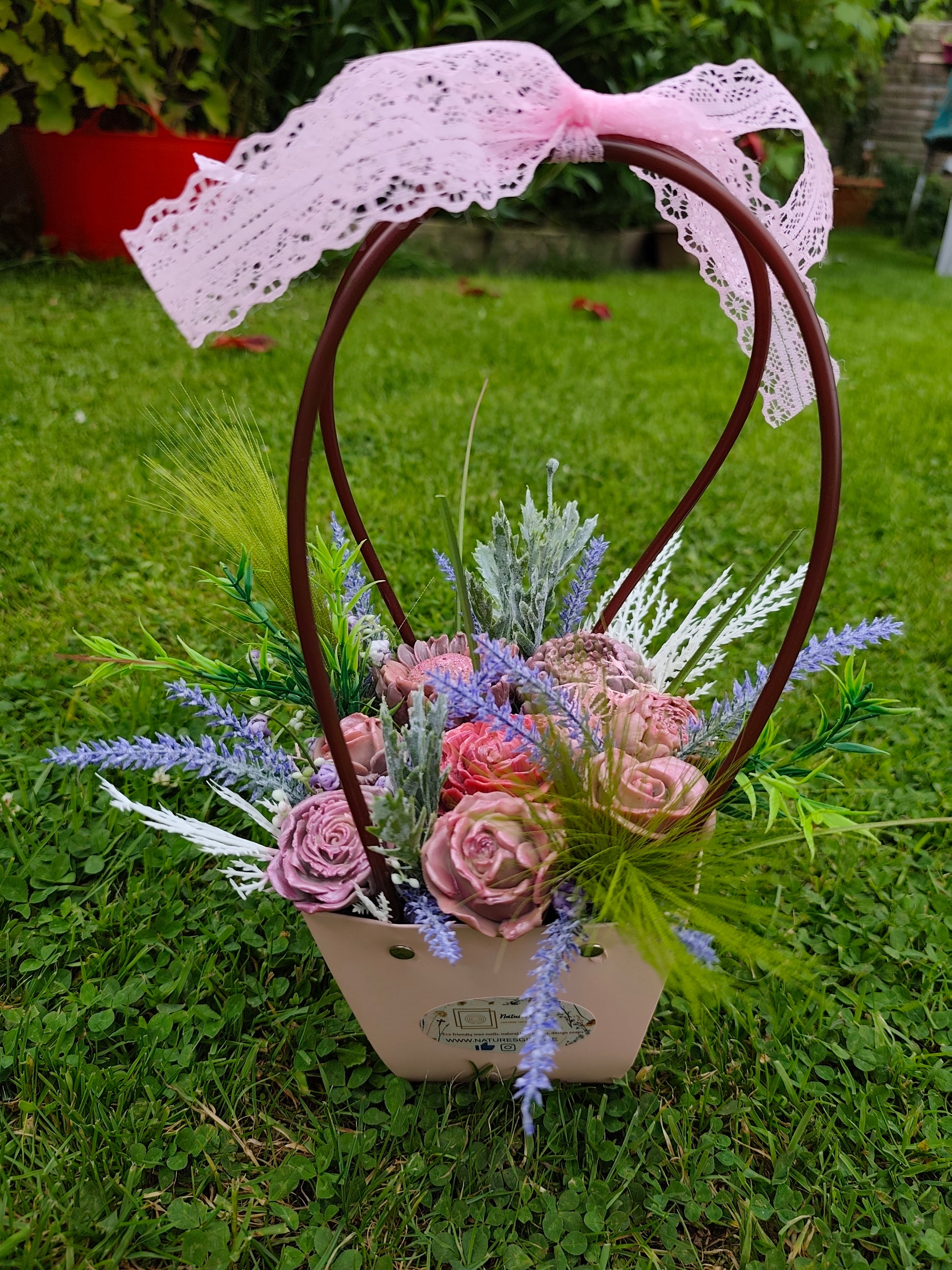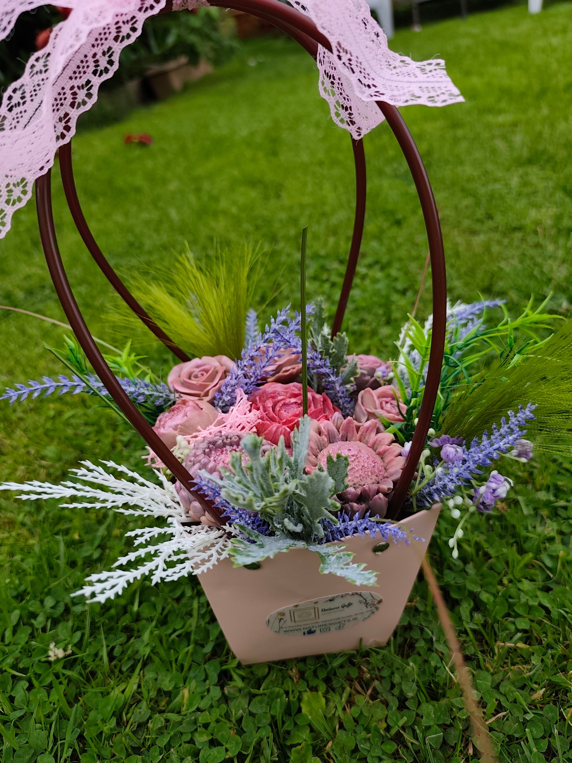 Delicately handcrafted, this stunning soap bouquet brings the elegance of fresh blooms with the lasting beauty of artisan soap. Arranged in a charming blush-toned basket and topped with a vintage lace bow, each soap flower is infused with our Flower Bomb-inspired fragrance — a captivating blend of floral notes that is both fresh and feminine.